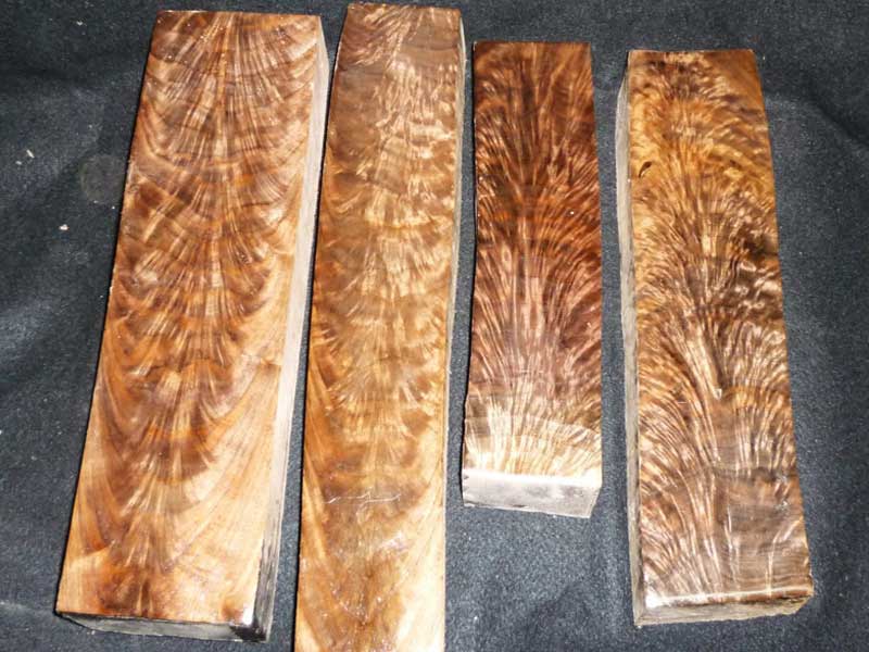 These ultra fancy pieces are fantastic for pistol grips, knife handles, turkey calls, duck calls and many other uses. I have them in various sizes.